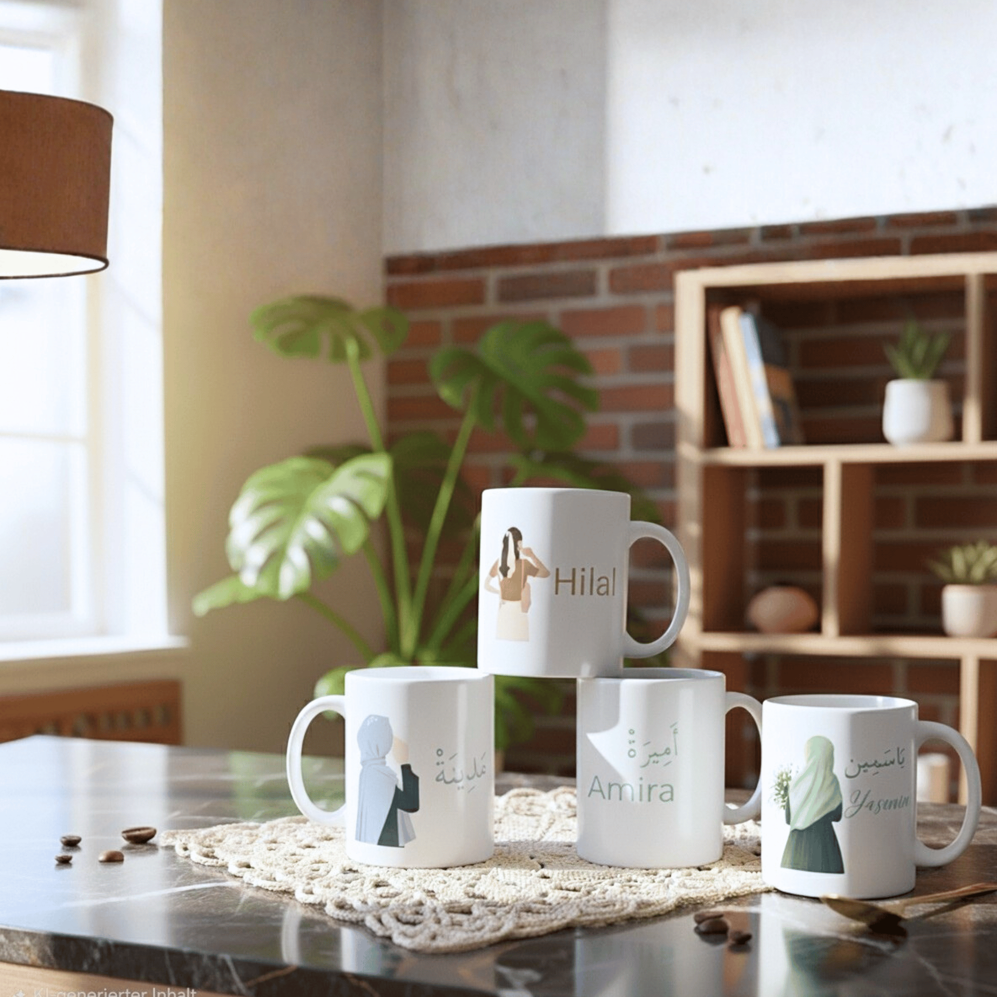 Wähle zwischen arabischer Kalligrafie, lateinischer Schrift oder beidem, um deine Tasse nach deinen Wünschen zu gestalten. Jede Tasse ist ein einzigartiges Stück, das deine Persönlichkeit widerspiegelt.